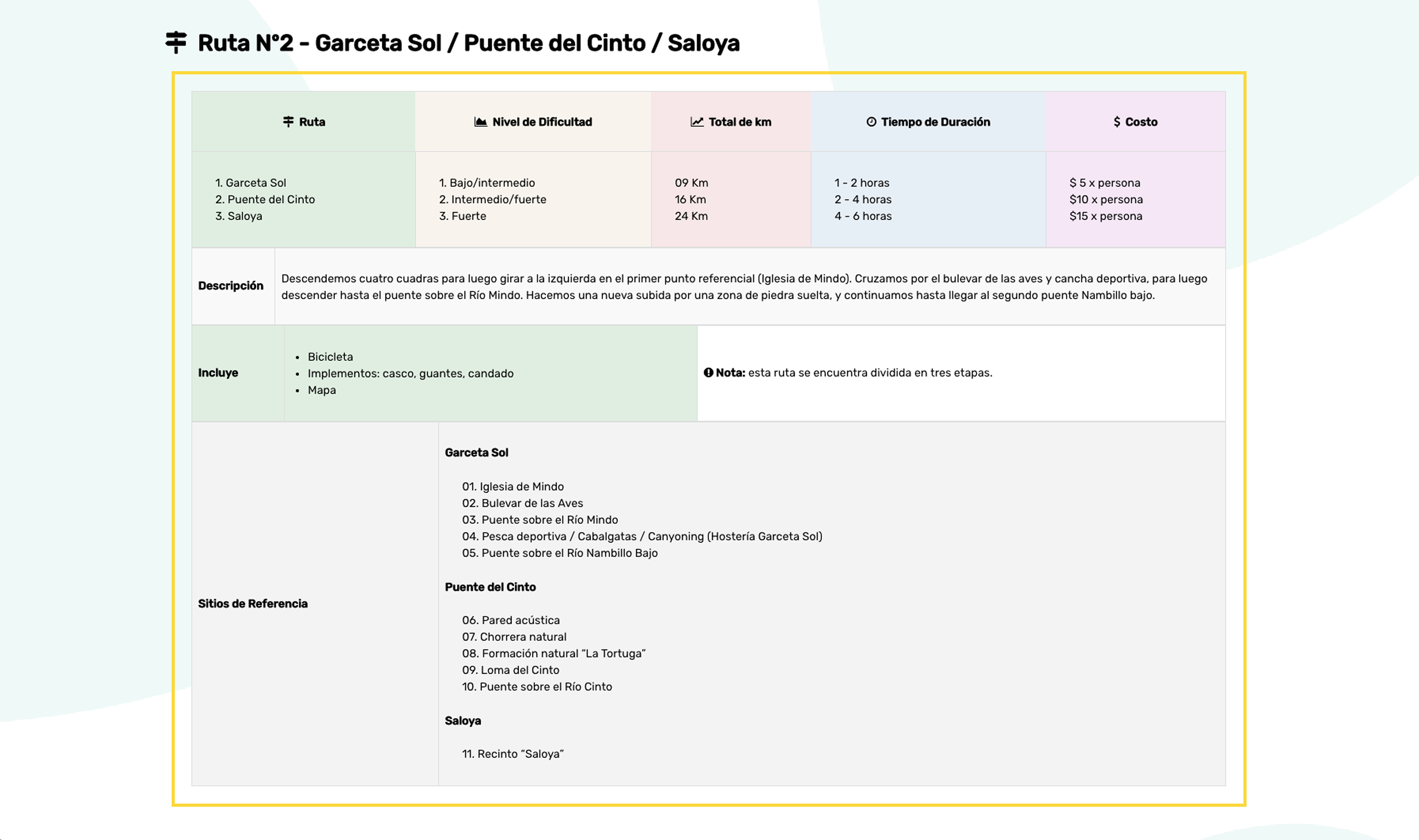 Ruta Nº2 - Garceta Sol / Puente del Cinto / Saloya