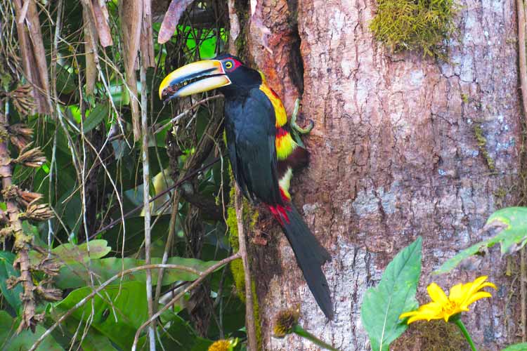 There we will walk into the lush forest and then back up to a clearing area where we can relax over breakfast at an elevation of 1900 m. Next to the eating table we will also have the opportunity to look at colorful mountain toucans and mountain tanagers.